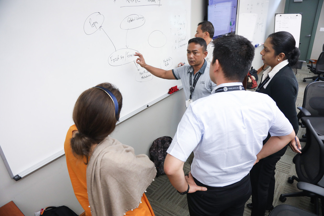 Leaders of the Asia Pacific Center for Security Studies give a tour of the campus.